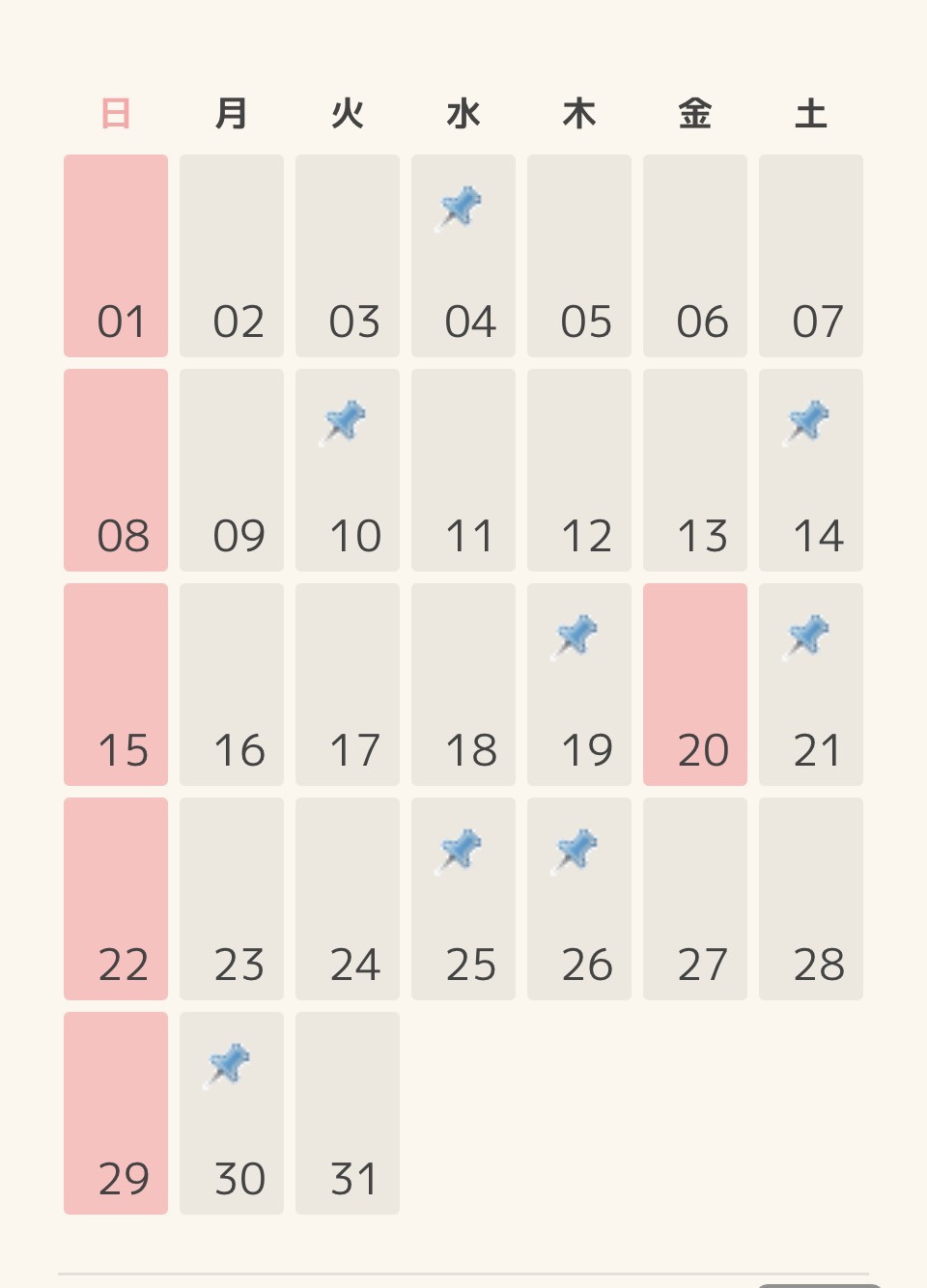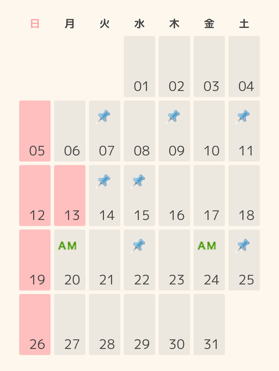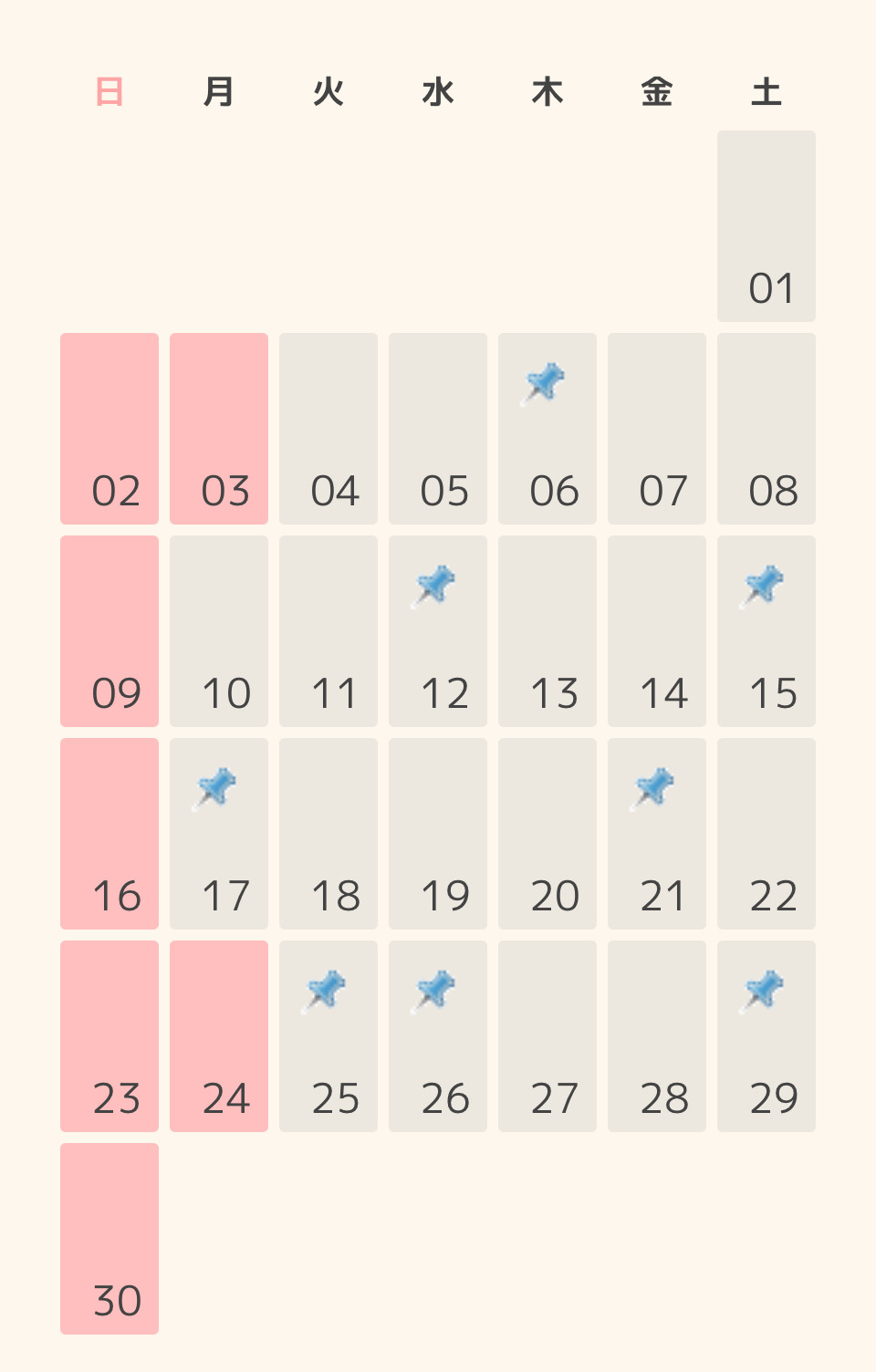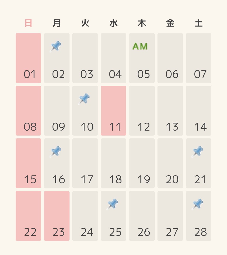 ※ 青ピン ⇒ 午前・午後 レッスン 開講日となります。