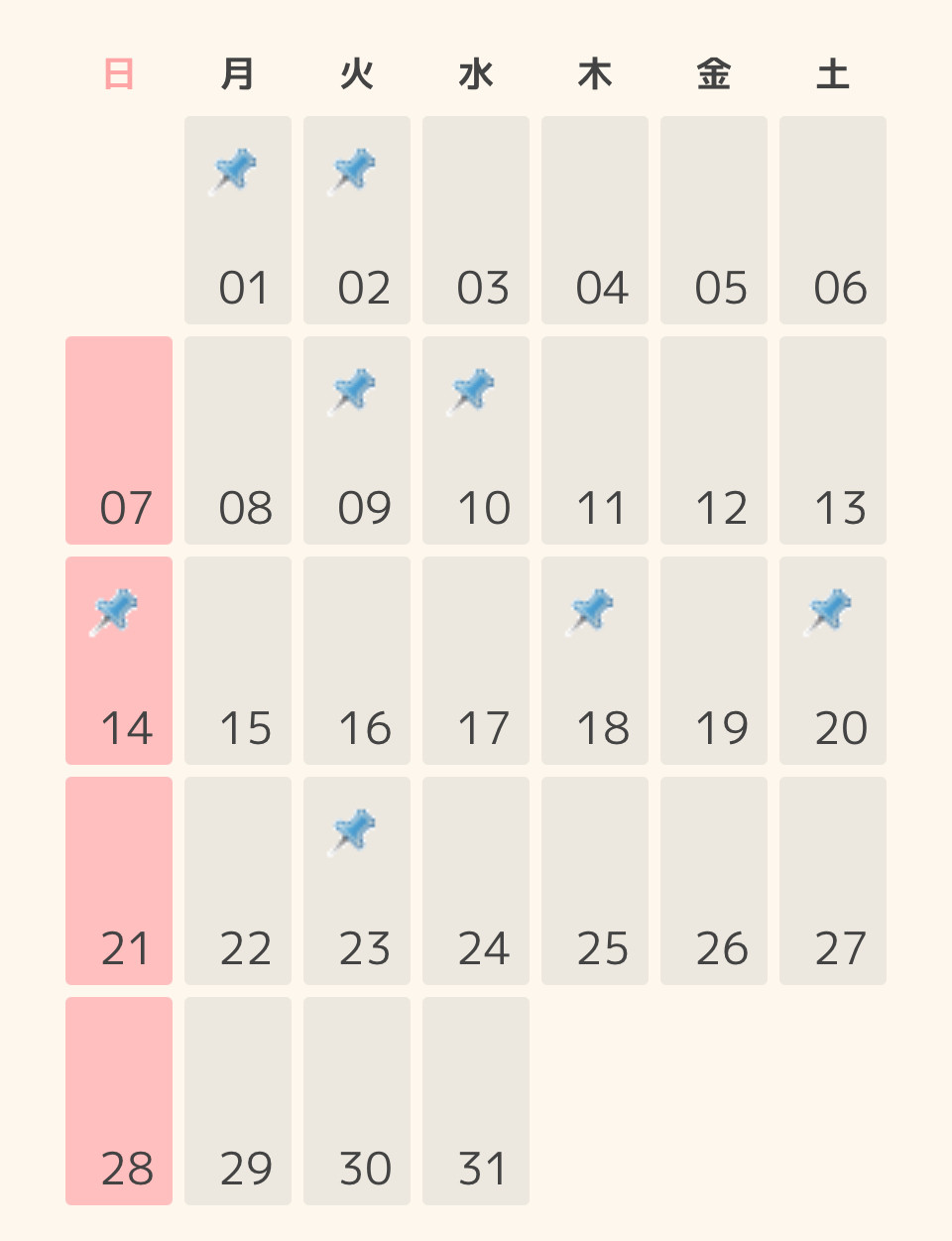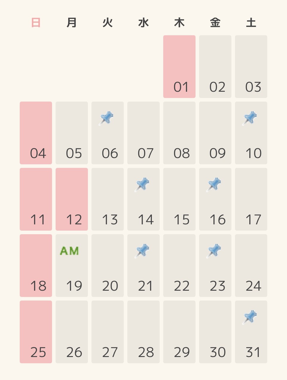 ※ 青ピン ⇒ 午前・午後 レッスン 開講日となります